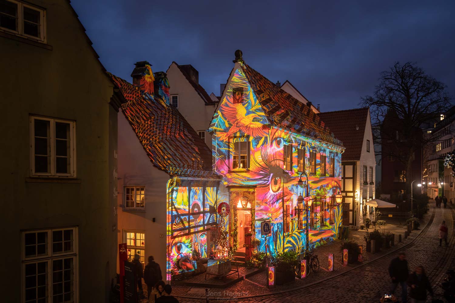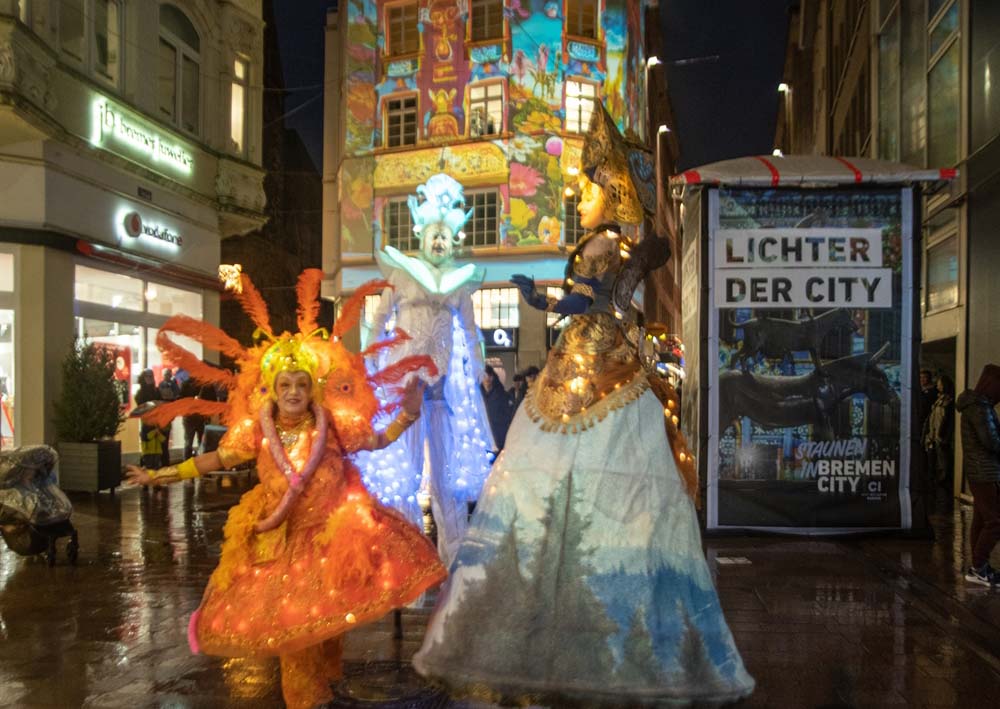 In den ersten beiden Jahreswochen erstrahlten insgesamt 10 Fassaden in der Altstadt und im Schnoor in bunten künstlerischen Bildern. Täglich zwischen 17.30 Uhr und 21.30 Uhr lockten die Illuminationen viele begeisterte und neugierige Besucherinnen und Besucher in die Innenstadt und versprachen so die Lichtblicke in der dunklen Jahreszeit. Viele freudige „Aah“‘s und „Ooooh“s so wie glückliche Gesichter waren rund um den Marktplatz zu beobachten – selbst bei dem typischen Bremer Wetter. Viele schöne Momente sind das Resultat der Lichter der City und wir freuen uns schon auf die nächsten Illuminationen.