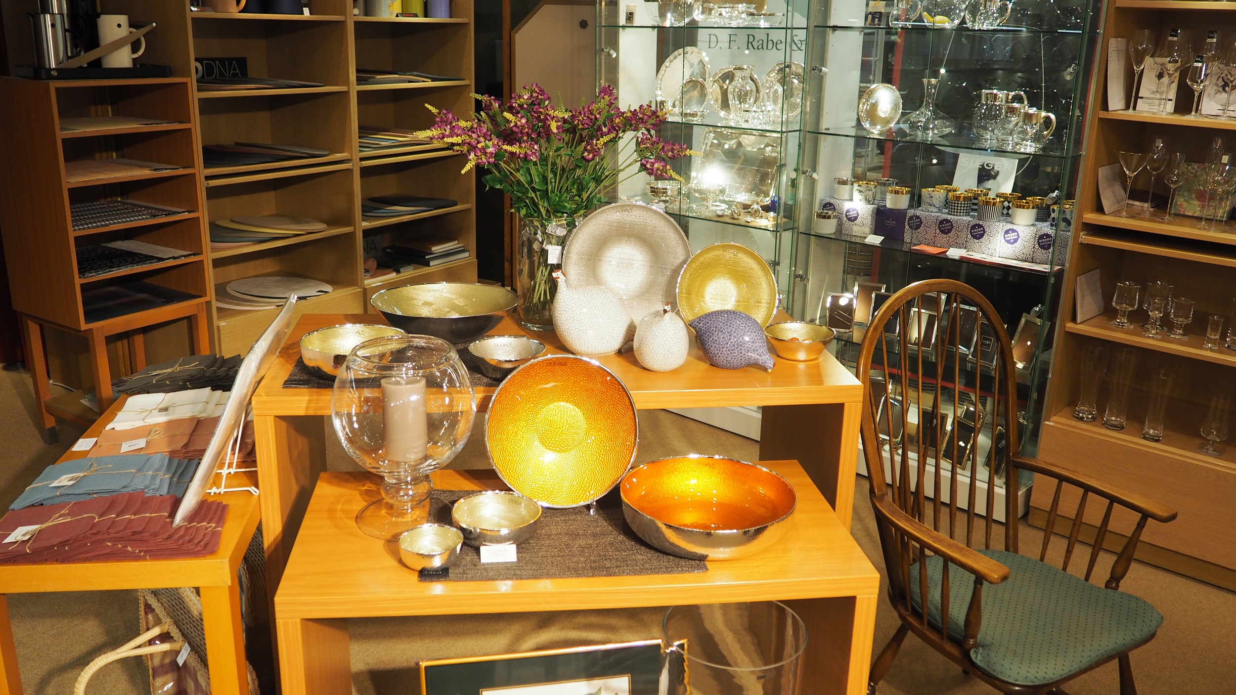 Seit über 185 Jahren wird bei D.F. Rabe & Co. mit Porzellan, Silber und Kristall gehandelt. Weltbekannte Manufakturen wie Meissen, KPM Berlin, Royal Copenhagen, Herend und Fürstenberg, Silber von Robbe & Berking oder Kristalle aus Theresienthal und der Josephinenhütte sind hier ebenso erhältlich wie klassisches Steingut. Einen interessanten Kontrast bilden die Marken Dibbern, Riedel, Zwiesel, Alessi und Stelton sowie Bestecke von Pott.
